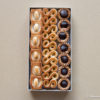 Geflämmtes Teekonfekt in einer Geschenkbox mit traditionellen Schleife in waldgrün